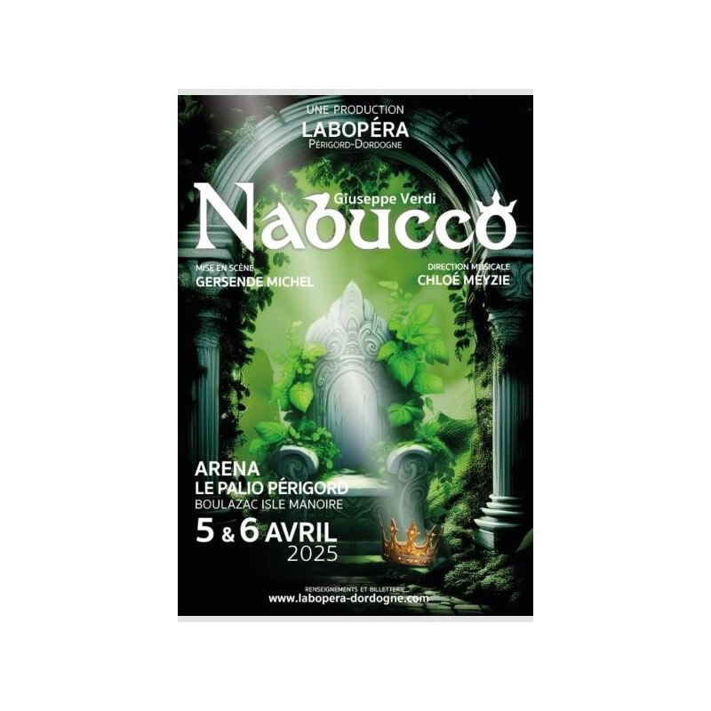 La nouvelle production du Labopéra Périgord-Dordogne réunit un orchestre symphonique de 70 musiciens dirigé par Chloé Meyzie et 100 choristes et solistes mis en scène par Gersende Michel. En 580 avant J.C. , Nabucco est roi de Babylone. L’histoire se déploie entre deux personnages confrontés à la haine que se vouent leurs peuples respectifs. Après de nombreuses péripéties, c’est la liberté qui triomphera.